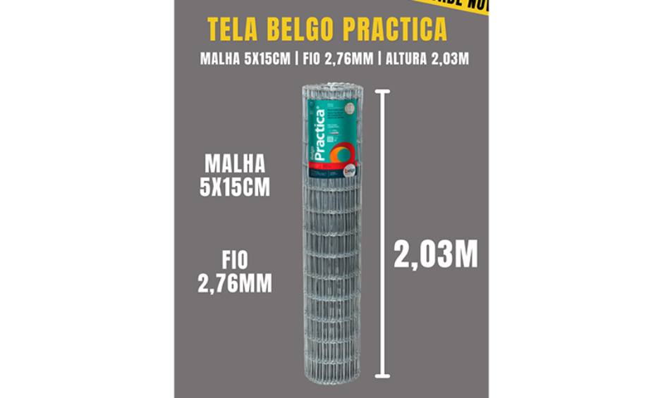 16 de dezembro de 2025Tela Belgo Practica GalvanizadaMalha 5x5cm Fio 2,76mm Altura 2,03m Rolo 20m Cód. 204